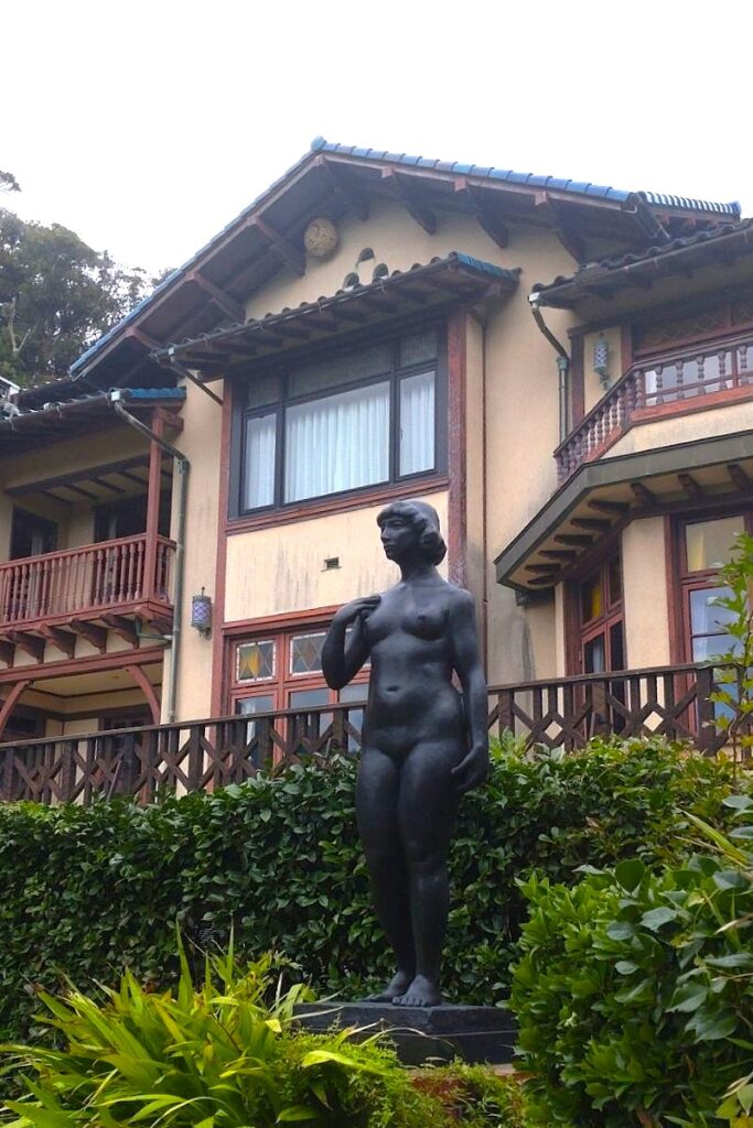 建物そのものが重厚な洋風建築としての文化財の価値があり、その前提にはバラなど季節の花が咲き誇る洋風庭園となっています。