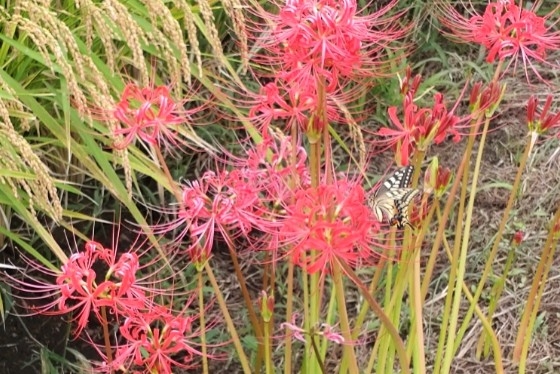 2025年9月24日、年金者組合鎌倉支部のカメラ・ウォーク、健康ウォーク合同の「小出川・彼岸花を楽しむ」に参加しました。日差しはまだ熱いですが、風は爽やかな秋を感じさせる一日、満開の彼岸花の赤と、稲刈り前の田んぼの黄色、まわりの木々の緑のコントラストが映える風景を満喫できました。