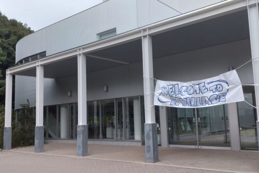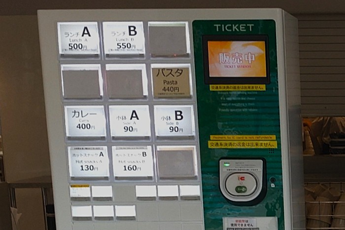 H(イータ)ビレッジは学生寮のこと。構内の学生食堂は夏休み中なのでしまっていましたが、ここの食堂は寮生用に営業しており、昼食時は一般の人も利用できます。ランチAが500円、ランチBが550円、その他カレーやパスタも400円程度ですので、最適ですね。隣にはトイレもありました。