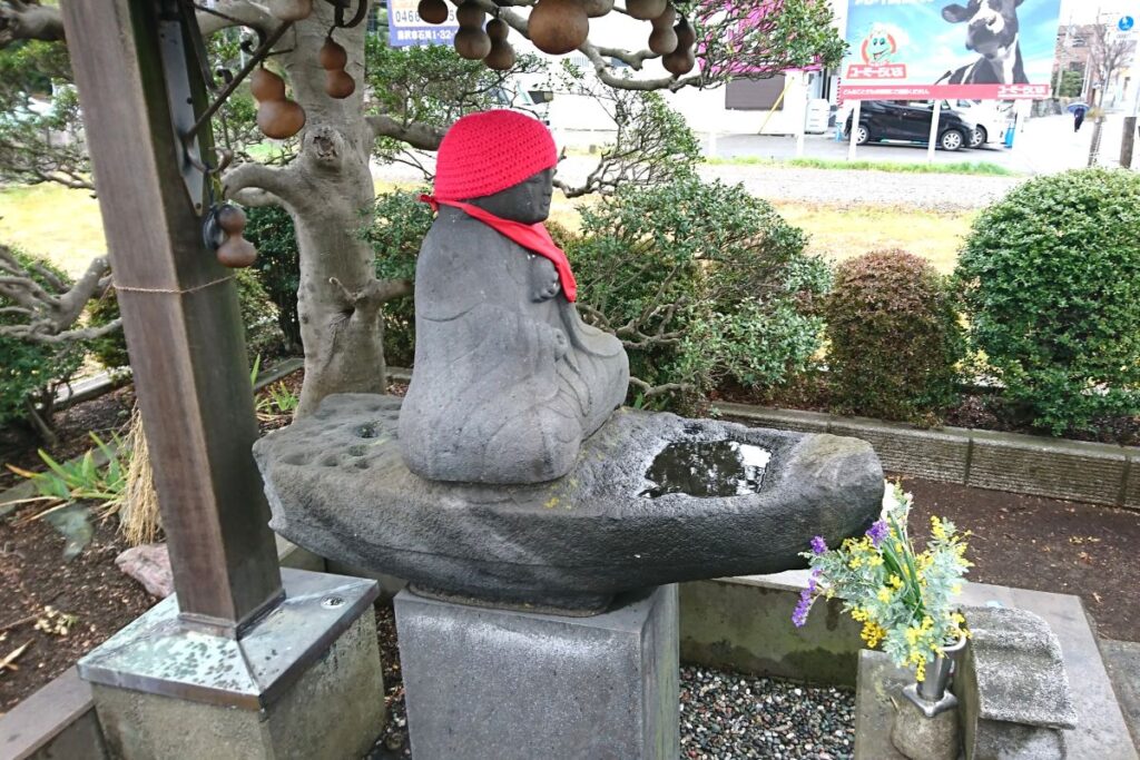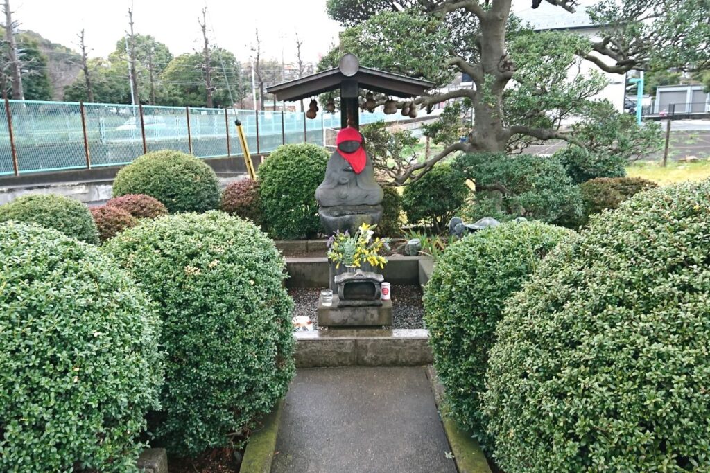 大庭城の南側の急坂を下っていくと、県道の側に舟に乗ったかわいらしいお地蔵さんが祀られています。この舟地蔵にはこのあたりの歴史に関わる言い伝えがあります。