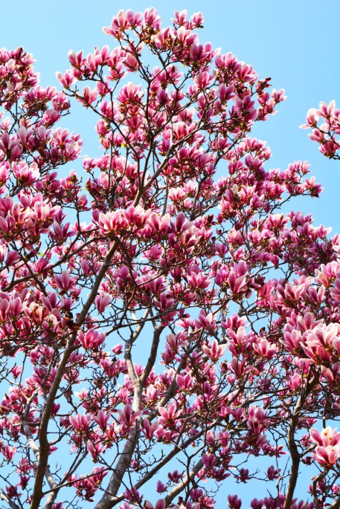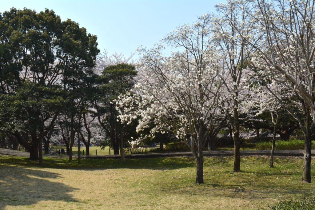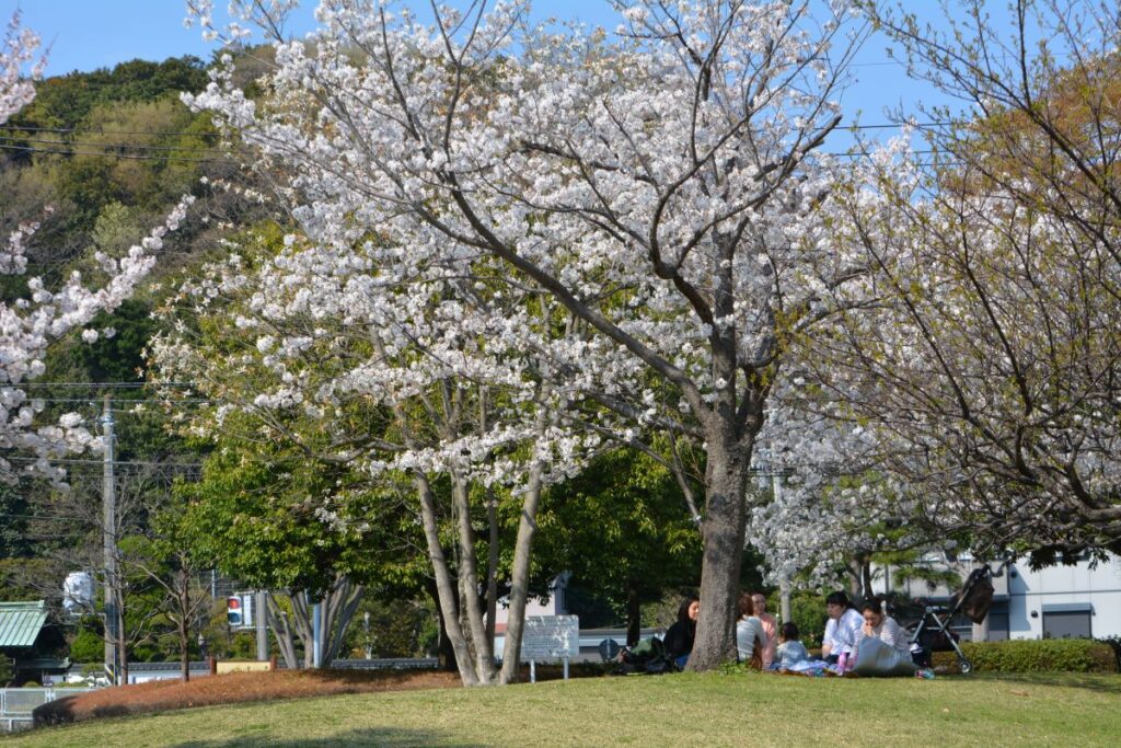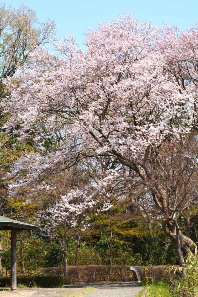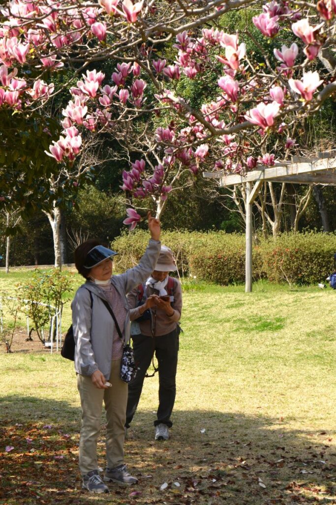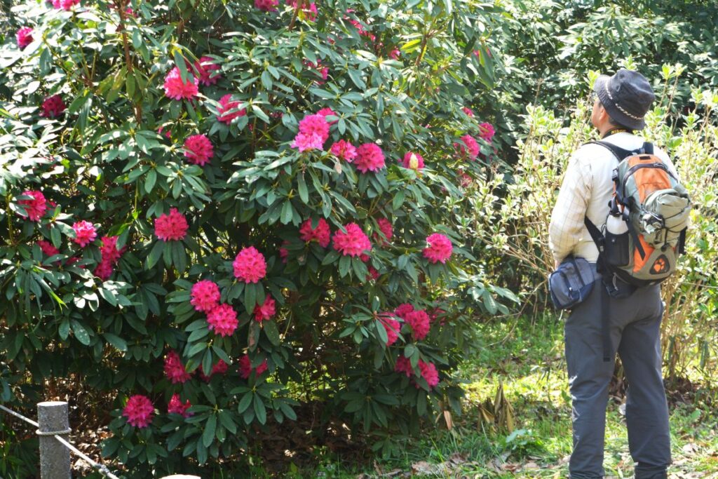 大庭城址公園には、桜だけでなく、たくさんの花が咲きます。この日はシャクナゲとモクレンが見事に花を咲かせていました。5月になるとバラ園が開園します。