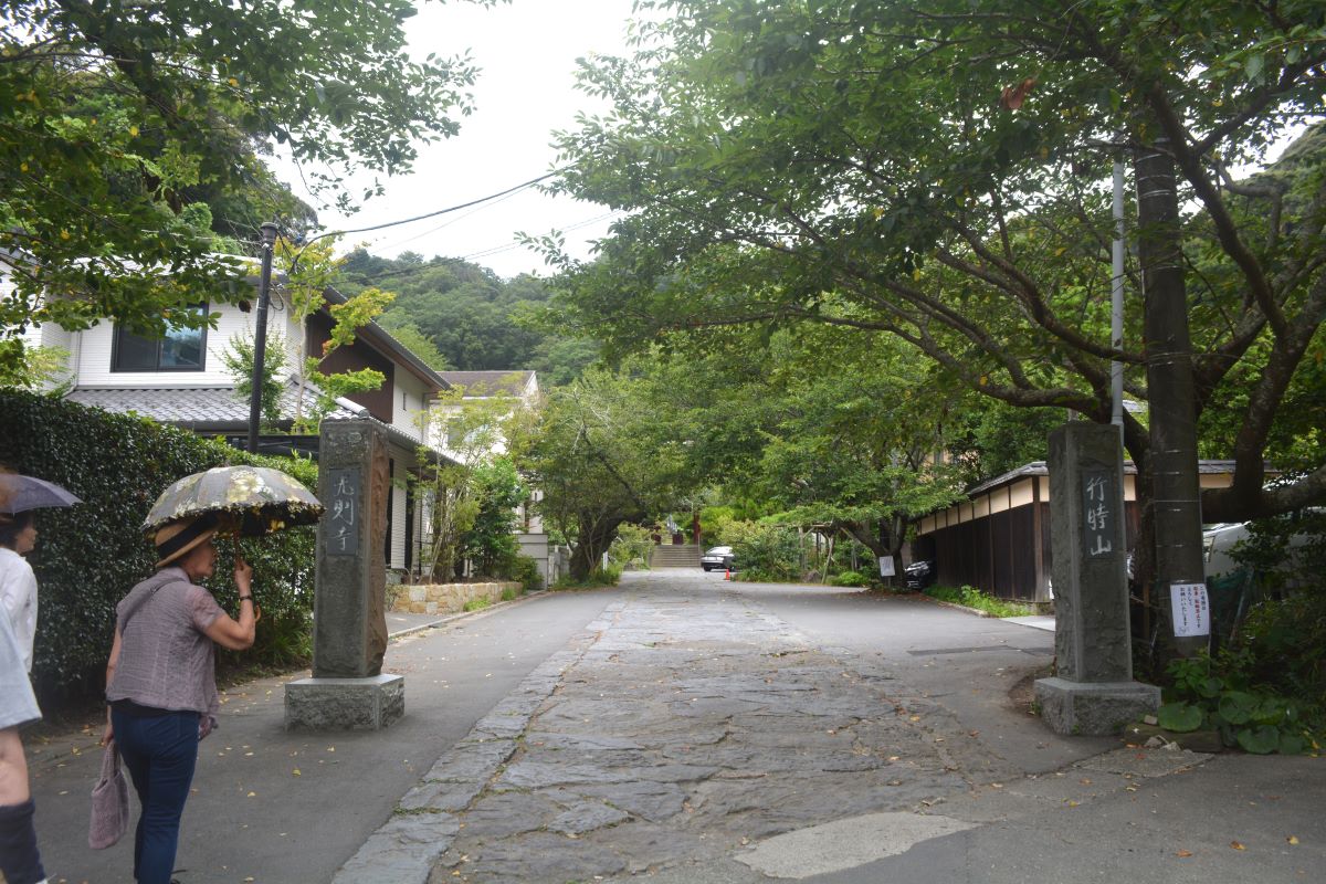 参道を進むと、住宅街の奥に光則寺が見えてきます。左手に寺号の光則寺、右手に山号の行時山とああります。寺号は宿谷光則、山号はその父宿谷行時の名に由来します。