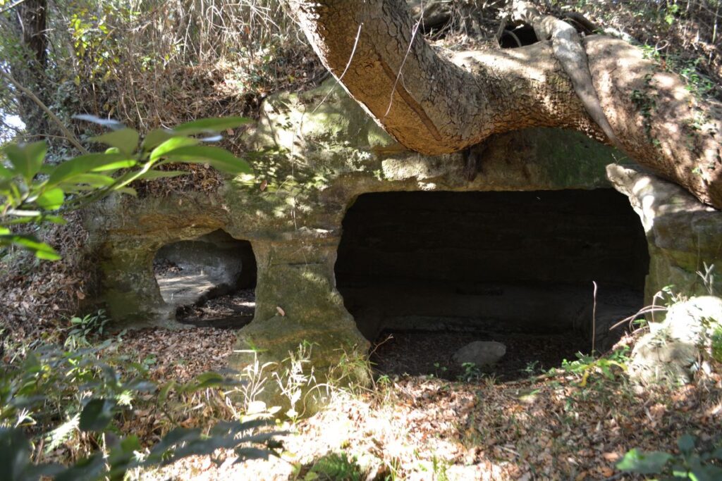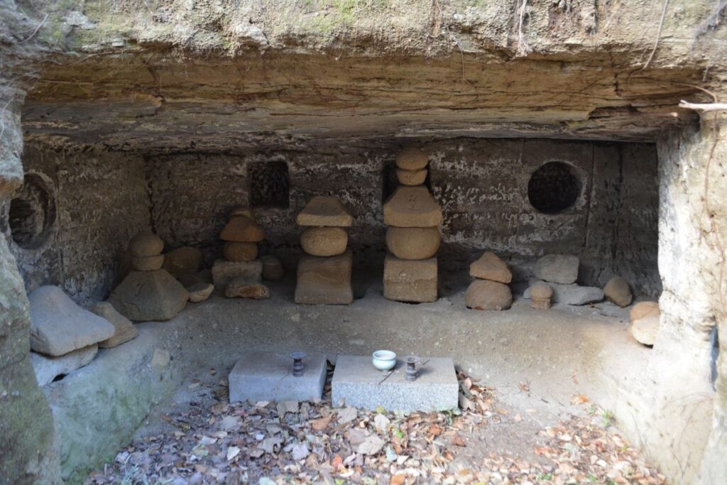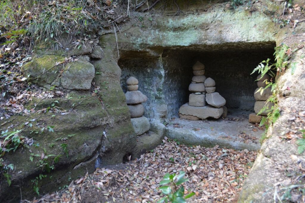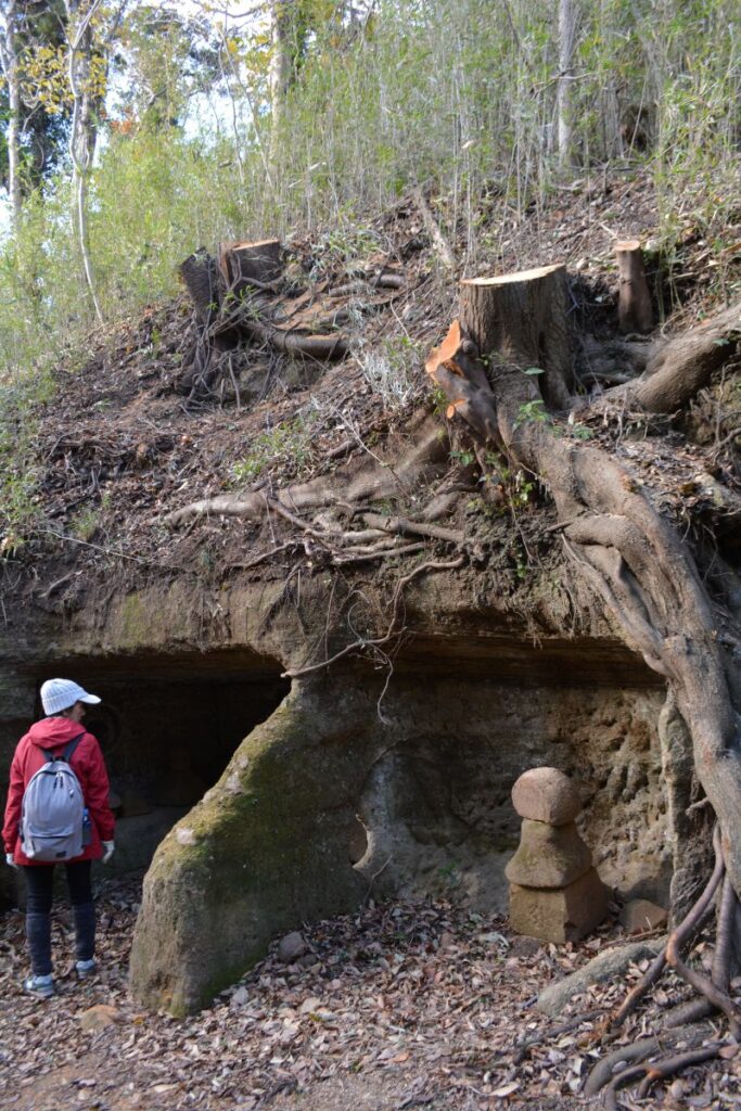 次は、2017年の12月に、この付近を歩いたときに撮影したものです。当時は遺跡としては荒れ果て、ごらんのような様子でした。それでも、有名な唐糸やぐらや日月やぐらを見ることができました。