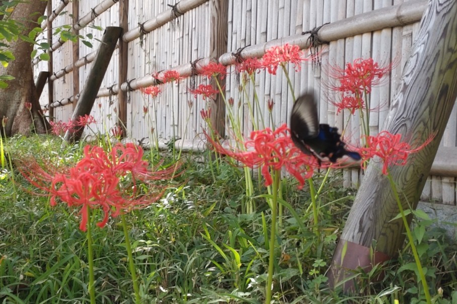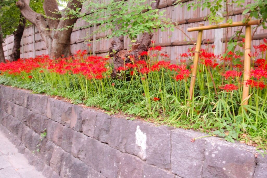 秋 八幡宮東石垣の彼岸花